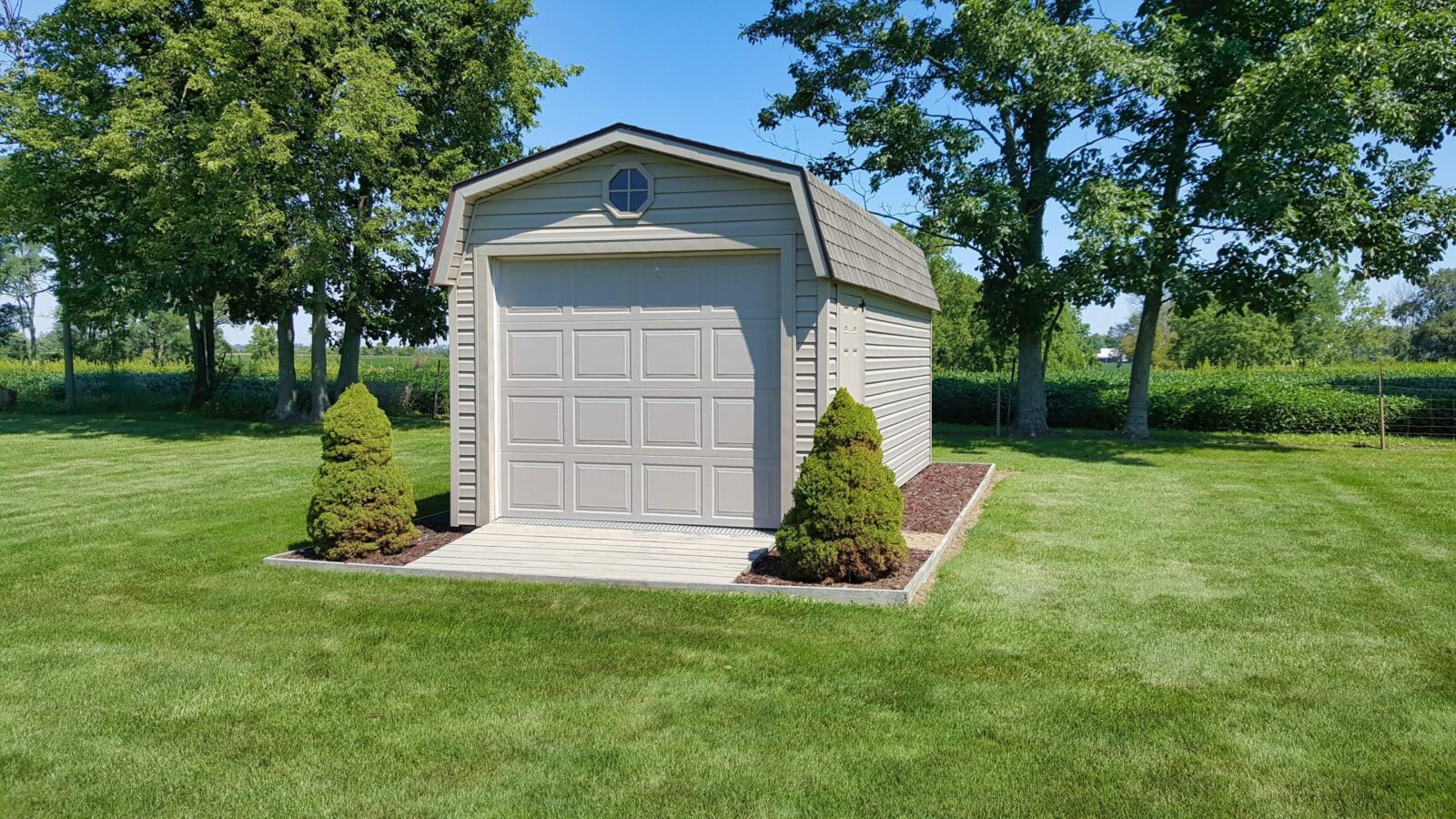 Getting a portable garage from Beachy Barns is the quickest way to unlock a huge amount of space in the Central Ohio region. Traditional stick-built garages are time-consuming and costly to build. We hand-build these garages at our shop in Plain City, Ohio. Because we build them in the shop, we are able to build more quickly and more efficiently, with much less waste in time and materials than traditional building methods. In cases where we have to build on-site, we pre-build as much as we can in the shop before we come out. In most cases, our on-site builds are completed in less than a day because most of the work is done in our shop long before we enter your property.