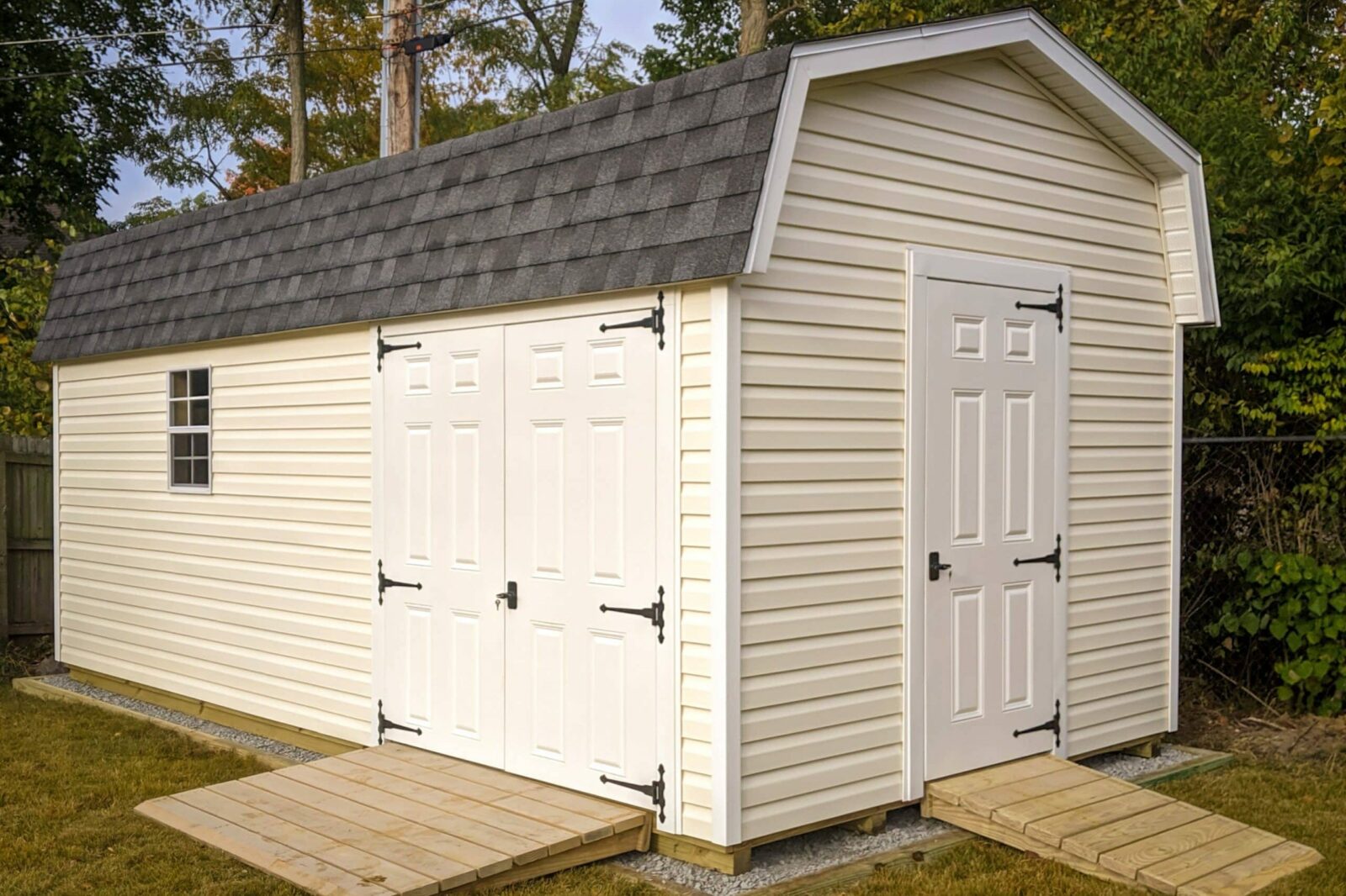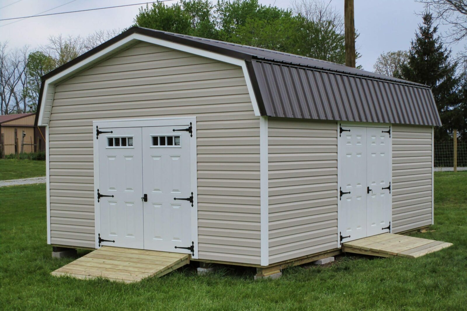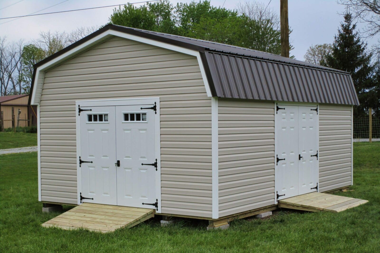 - Double doors reinforced with 2×4 bracing