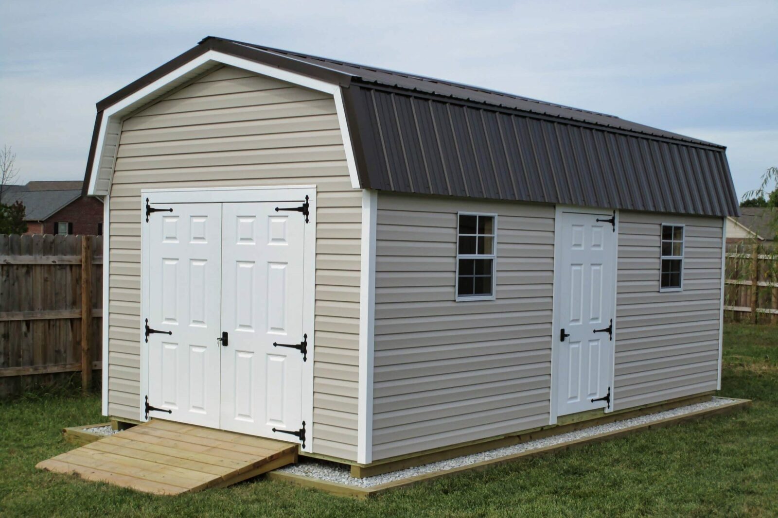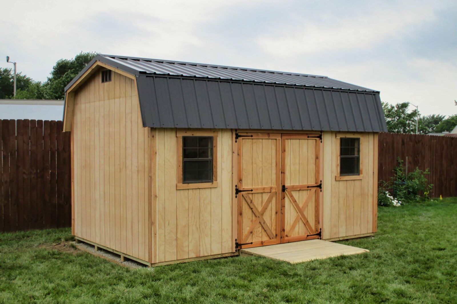 The Highwall lofted barn maximizes your storage space, with a loft at each end of the building that allows for the storage of seasonal or occasional-use items. With 6’4” sidewalls and a tall roof space, these garden sheds provide a lot of headroom. With these lofted barns, you’ll be able to clear your head from clutter by having plenty of space to work with. Its design allows for doors and windows to be placed on any wall, making it easily customizable for your needs. In fact, you can get started today with our in-stock inventory of Highwall Lofted Barn.